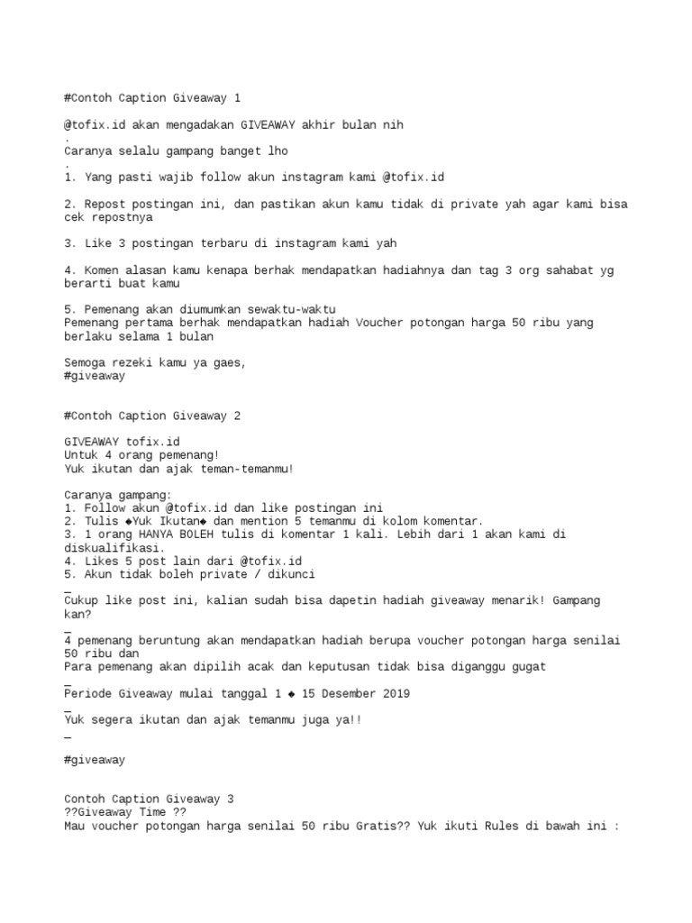 Contoh Caption Menarik Untuk Giveaway Sekali