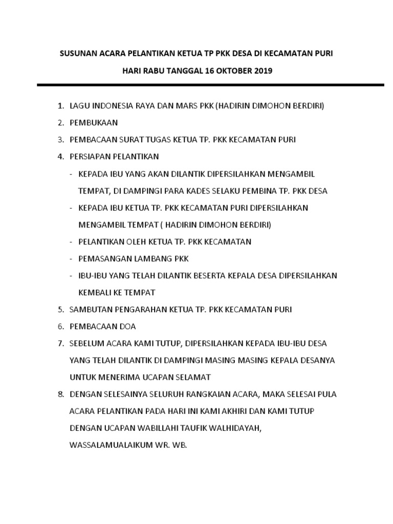 Contoh Salam Pembuka Dan Susunan Acara Contoh Naskah Sambutan Ketua Pertemuan Rutin Pkk Muda Mudi Susunan Acara Pelantikan Ketua Tp Pkk Desa Lingkup Kecamatan Maligano.