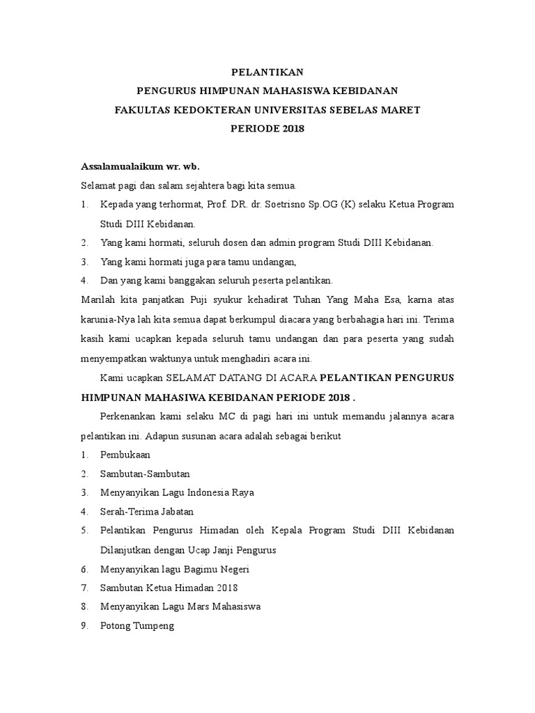 Teks Pembawa Acara Pelantikan Pengurus Kumpulan Contoh Teks Mc