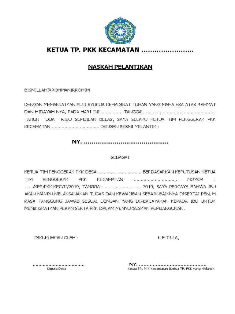 Naskah Pelantikan Ketua Pkk Desa Yang Mandiri Harus Di Arsipkan Pdf