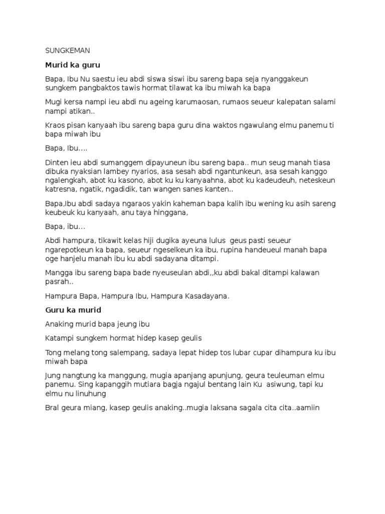 Contoh sajak epik bahasa sunda 6372698 ajayzangjoxer ajayzangjoxer 16062016 b. 39 kata mutiara perpisahan resign Ditulis. Puisi pesan dari guru kepada siswa tersebut biasa disampaikan terus menerus setiap tahun dengan redaksi yang hampir sama.