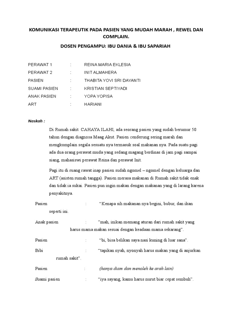 Role Play Komunikasi Terapeutik Pada Pasien Marah