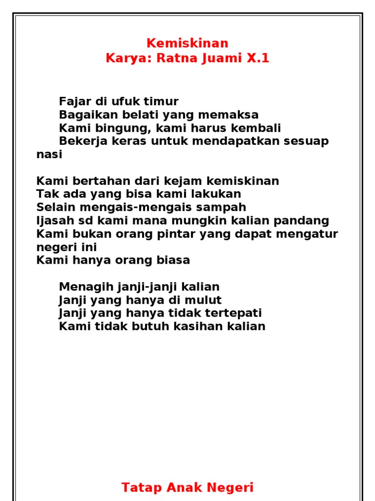 Karena admin bakal memberikan lebih dari 45 contoh puisi dari berbagai jenis puisi yang ada. AUDIO BUKAN UNTUK DIBUAT ULANGJudul. Mencintaimu aku rela terlukaHIMBAUAN.