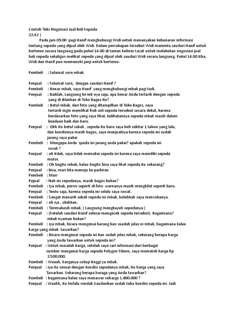 Contoh Teks Negoisasi Jual Beli Sepeda Dan Rumah