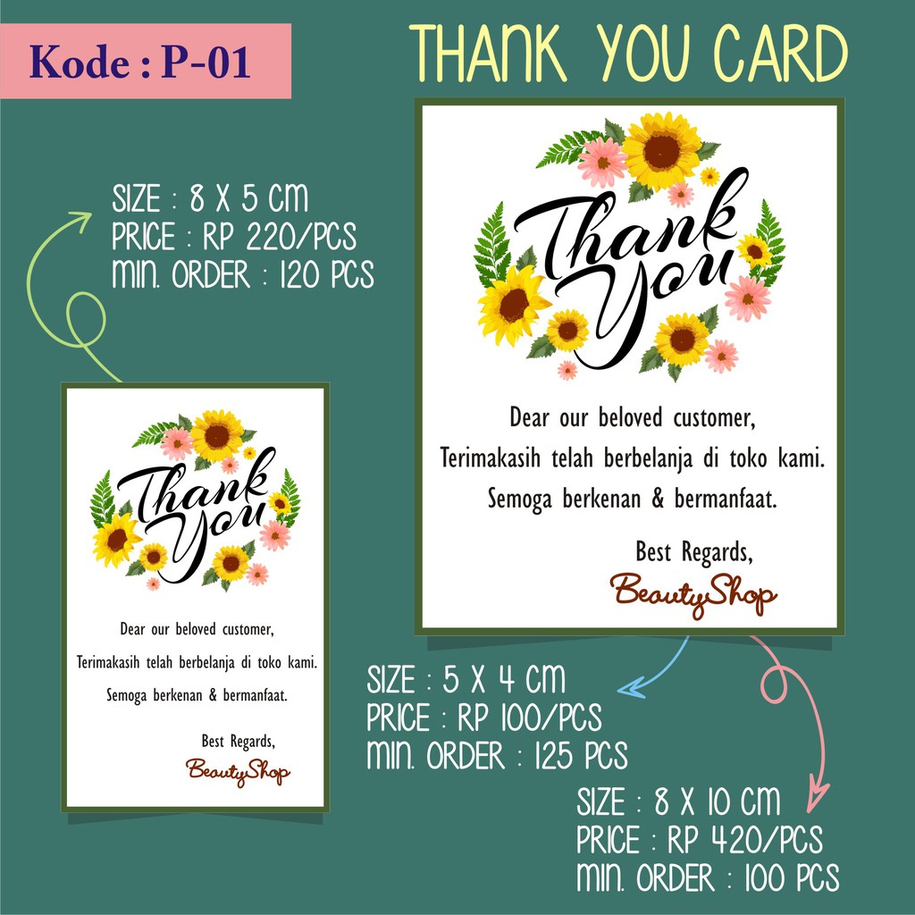 Thank You Card Online Shop Kartu Ucapan Terima Kasih Olshop Shopee Indonesia