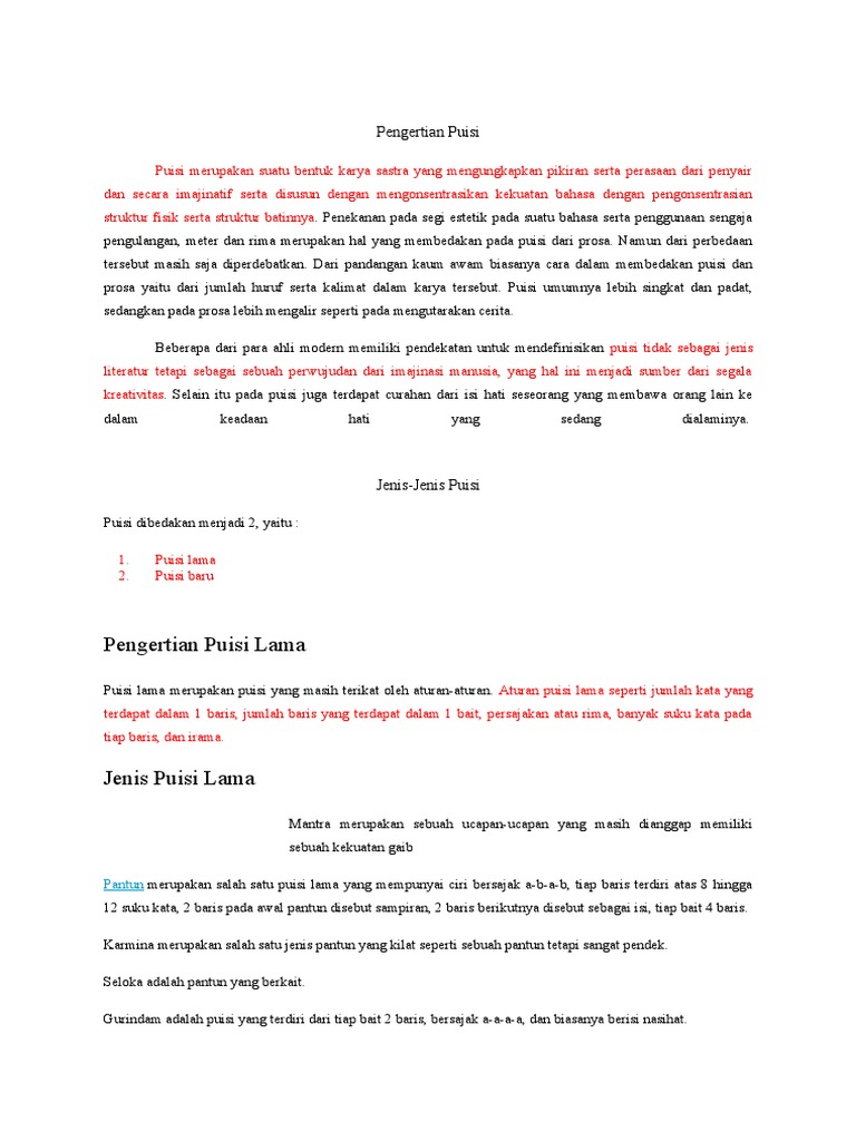 Inilah pengertian aturan ciri dan 7 jenis puisi lama seruniid. Dengan demikian kumpulan dari beberapa baris dalam puisi disebut bait.