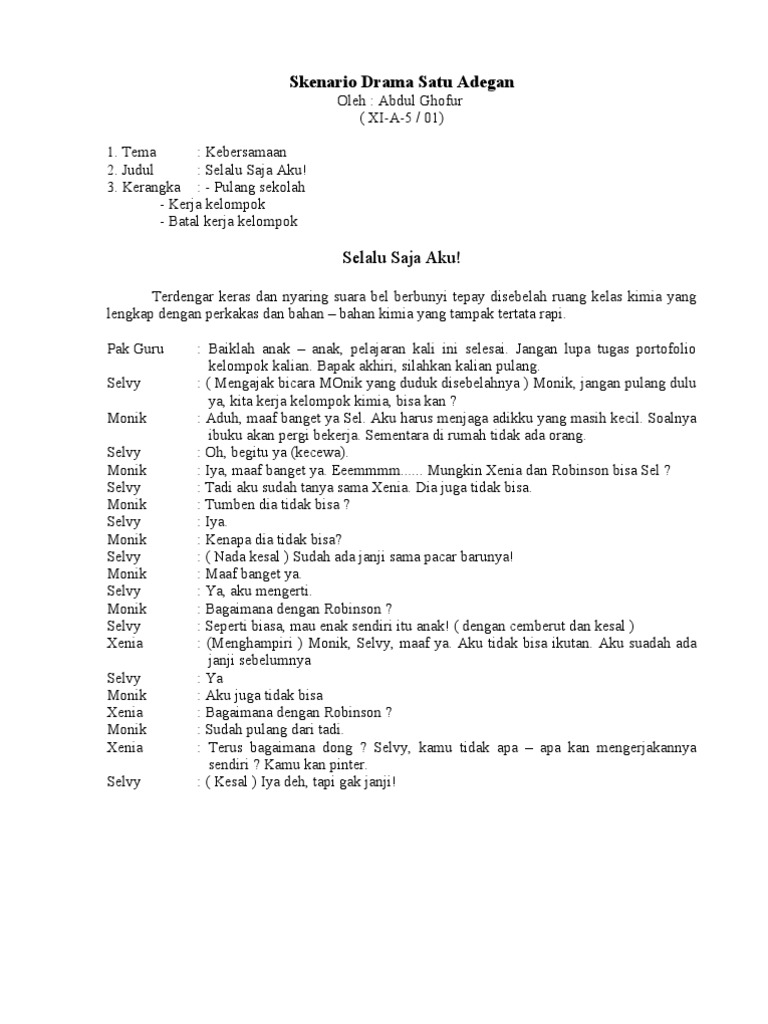 Contoh Naskah Skenario Drama Film Pendek. 14 Contoh Teks Naskah Drama. Teater Persahabatan Lucu Komedi 3 5 6 7 8 9 Orang.