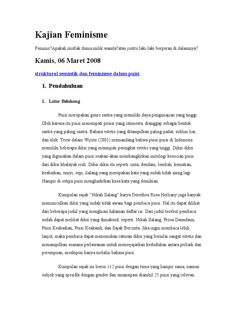 Kompleksitas makna pengibuan Kajian teks kumpulan puisi ibu mendulang anak berlari karya Cyntha Hariadi. Teknik Penulisan dan Tata Tulis Karya Ilmiah. Doc Analisis Feminisme Dalam Puisi Eky Rahayu Academia Edu.