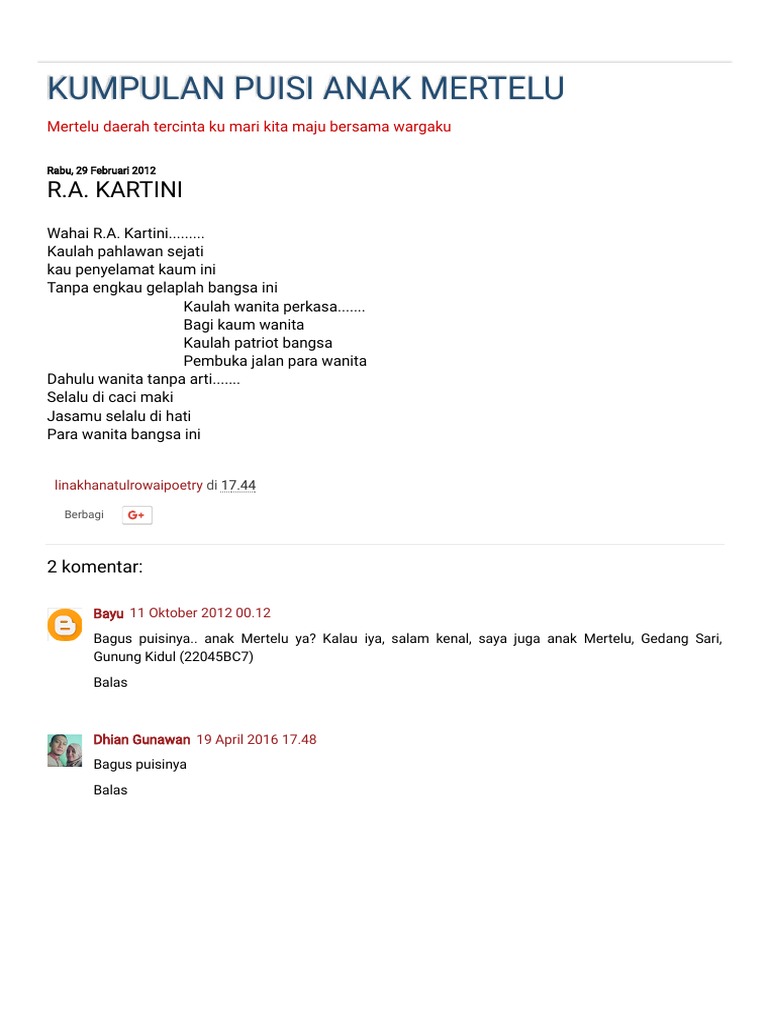 Kumpulan Puisi Anak Mertelu R A Kartini