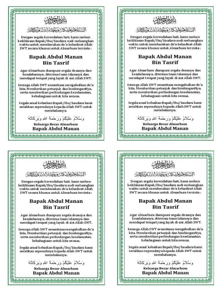 Tambahan Isi YasinMaksudnya adalah lembaran-lembaran yang berisi ungkapan terima kasih dari keluarga almarhum almarhumah nama-nama keluarga yang di tinggalkan seperti nama istri jika yang meninggal adalah istri nama istri jika yang meninggal itu suami nama anak mantu cucu cicit. Nyuratcom Situs Contoh Surat No 1 Di Indonesia. Cetakundangan cetakundanganpernikahan cetakundanganbogor desainundangan desaindancetakundangan undanganmurahbogor cetakundangankhitanan undanganunikbogor cetakkartuundangan cetak undangan bogor.