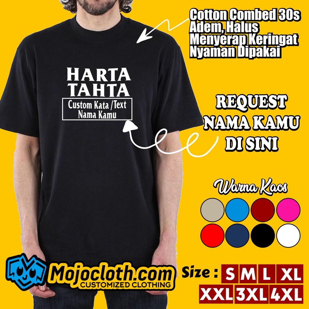 Kaos Harta Tahta Wanita Kaos Harta Tahta Custom Nama Atau Kata Kata Shopee Indonesia
