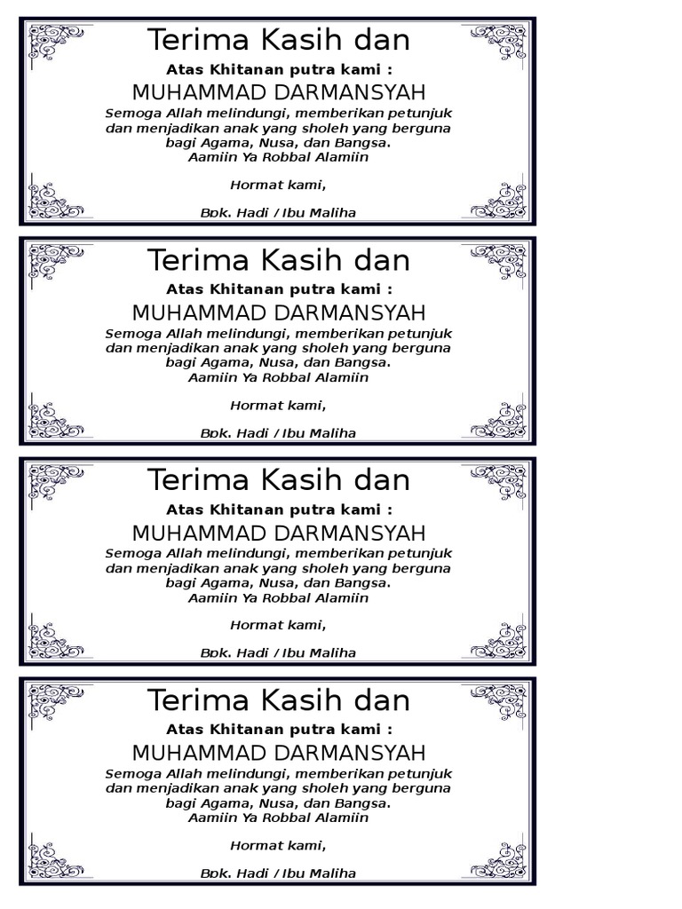 Contoh Kartu Ucapan Terima Kasih Khitanan Kartu Ucapan Terbaik