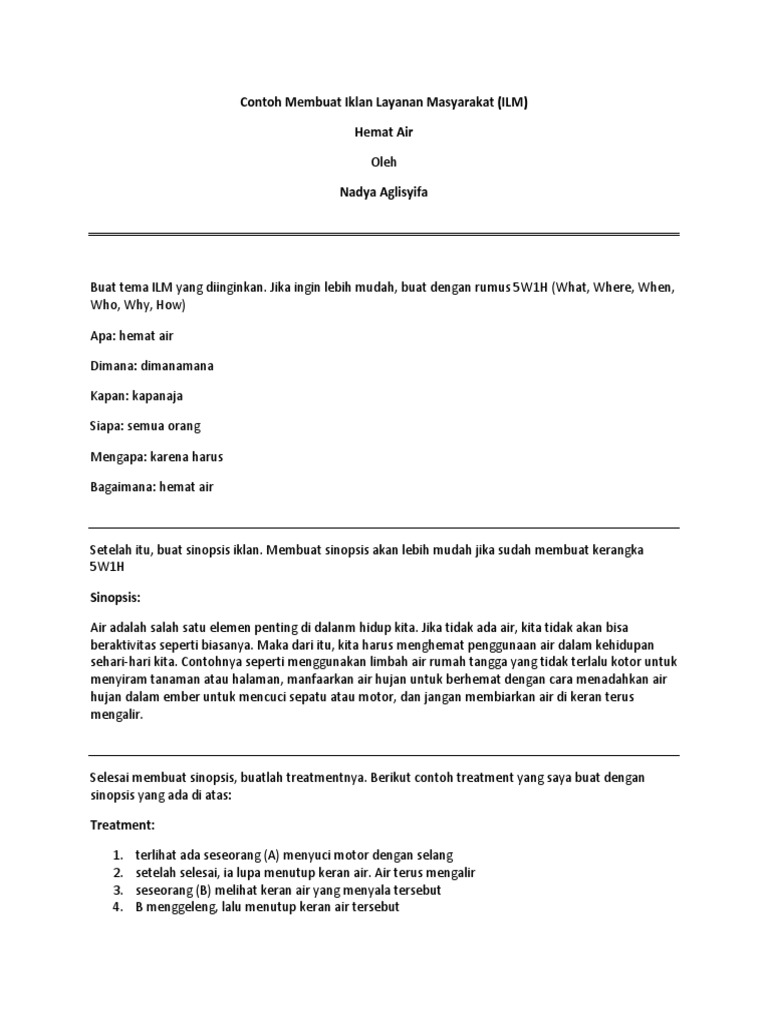 SINOPSIS SKENARIO dan STORYBOARD IKLAN LAYANAN MASYARAKAT BIJAK DALAM MENGGUNAKAN SOSIAL MEDIA Disusun Oleh. Terdapat beberapa kriteria yang dimiliki oleh Iklan layanan masyarakat diantaranya adalah. Inilah pembahasan selengkapnya mengenai contoh skenario iklan layanan masyarakat hemat air.