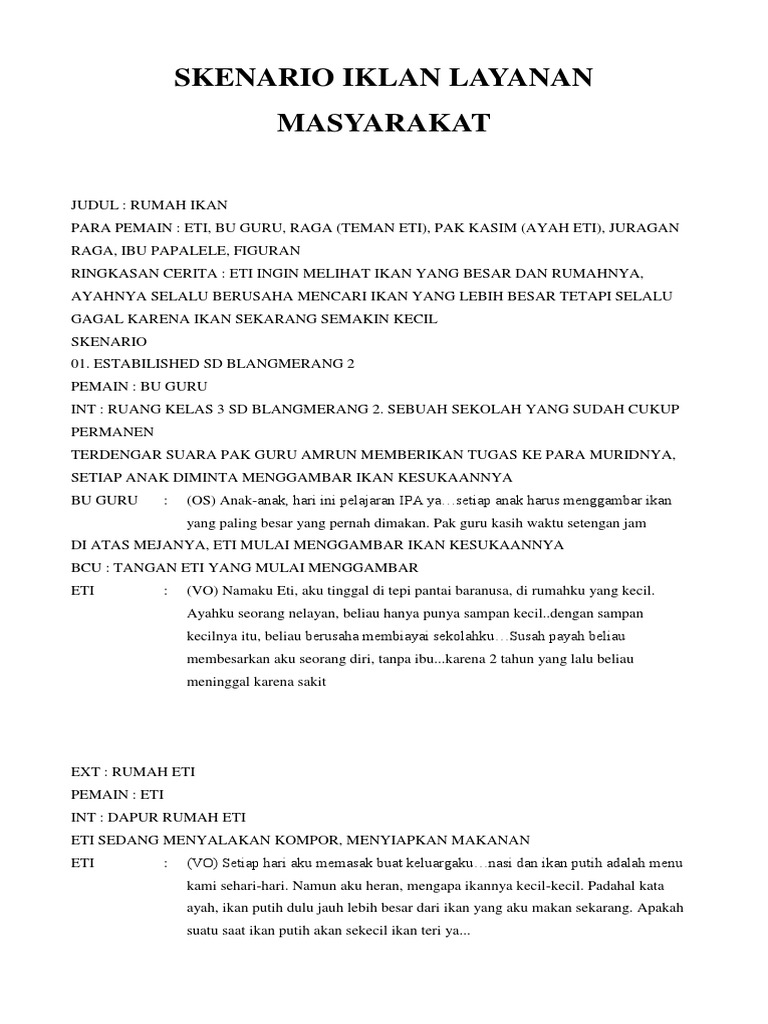 SKENARIO IKLAN LAYANAN MASYARAKAT. Contoh iklan layanan masyarakat tentang pendidikan seks. Tandai sebagai konten tidak pantas.