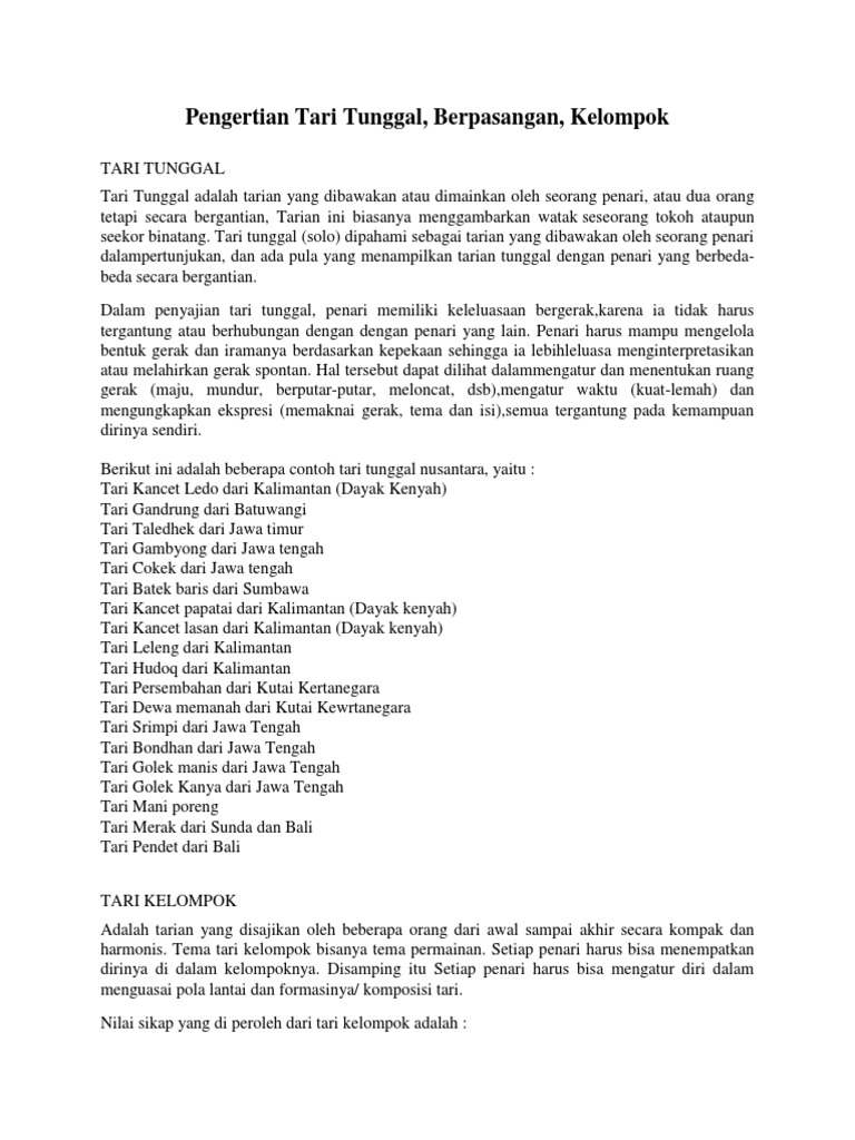 Contoh Tari Tunggal Berpasangan Dan Kelompok Barisan Contoh