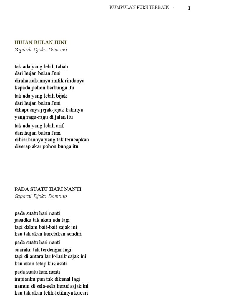 Apa yang aku gundahkan Doha-Qatar Maret 2005 I HEAR YOU ASKING. Jangan khawatir kumpulan puisi pendek ini ini akan membantu tugas sekolah kamu berkaitan dengan puisi. Dalam kayuh yang melambat Ayah mengolah pikir begitu cepat mencoba menyusuri memori kapan ia ke gereja terakhir kali sekedar untuk menjawab.