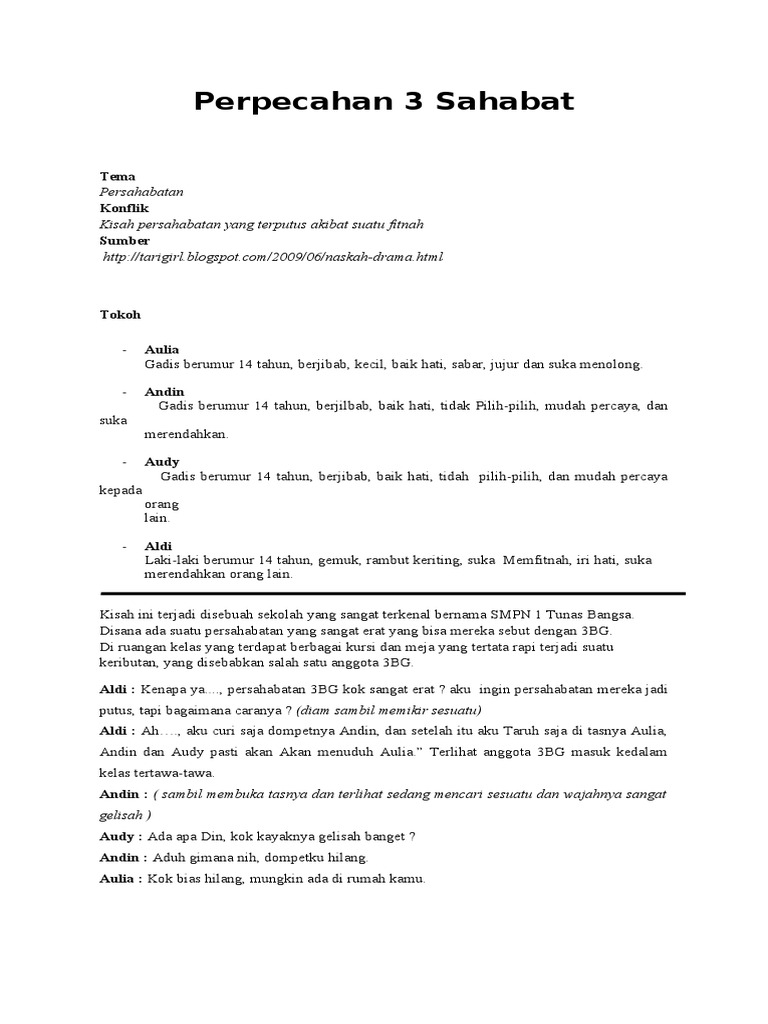 Contoh Naskah Drama 3 Orang Tentang Persahabatan Pdf
