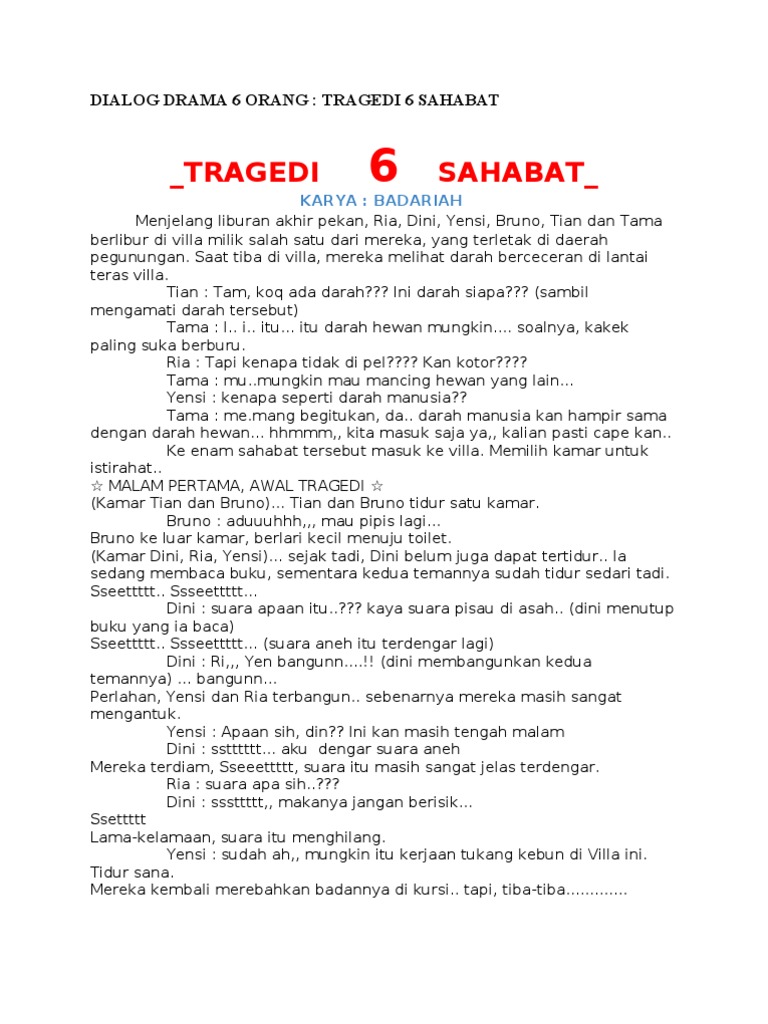 Dialog Drama 6 Orang Tragedi Sahabt