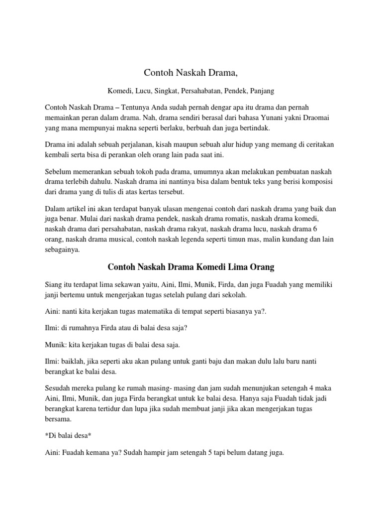 10 Contoh Naskah Drama Komedi Persahabatan Bahasa Jawa Singkat 5 6 7 Orang