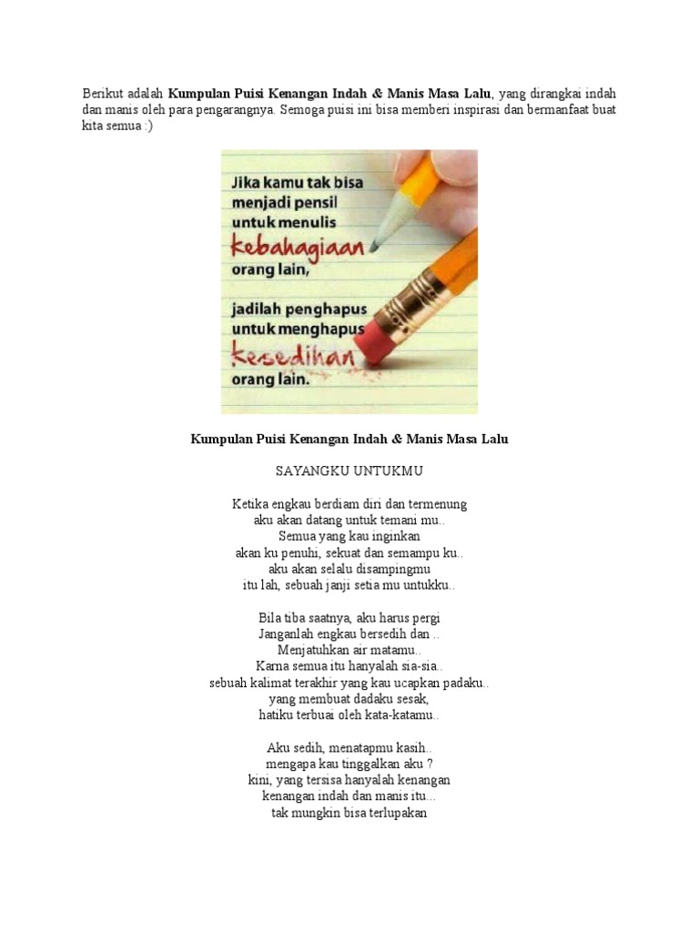 Berikut Adalah Kumpulan Puisi Kenangan Indah