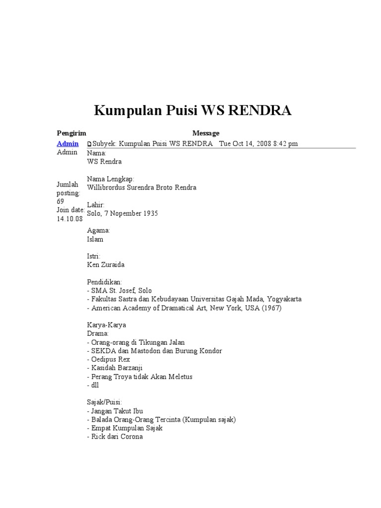 Kumpulan Puisi Ws Rendra Pengirim Message