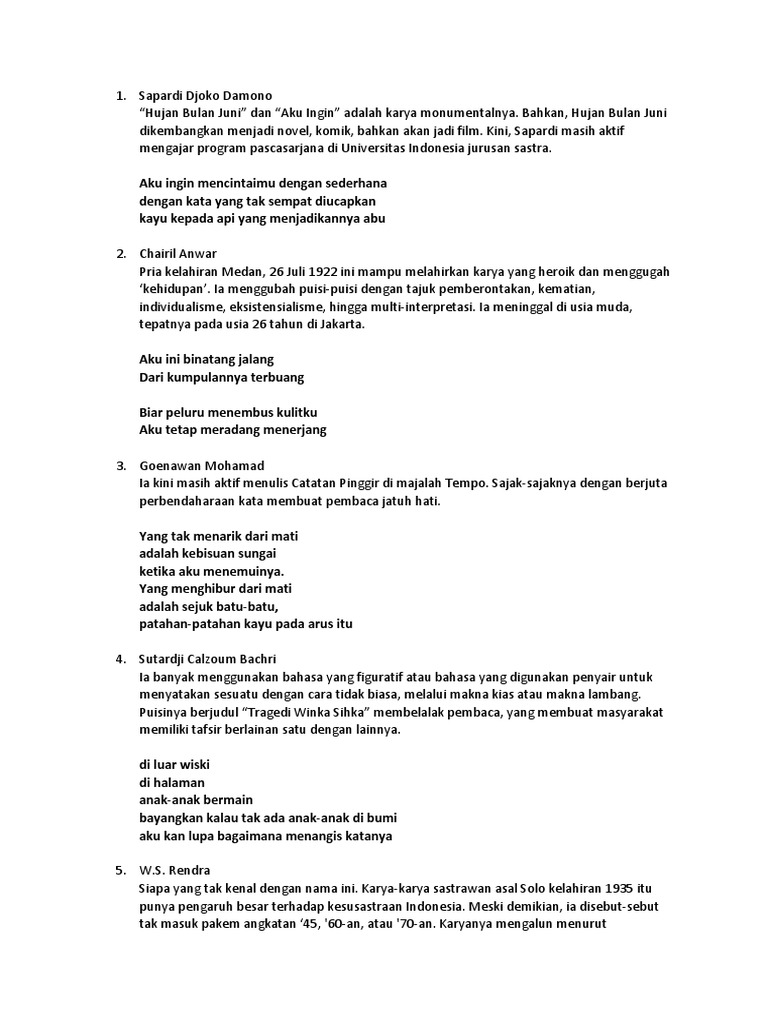 Saya sudah menyiapkan 31 kumpulan puisi Sapardi Djoko Damono lengkap. 298 Widya Warta No. Karya yang juga diadaptasi menjadi film pada tahun 2017 ini sukses menarik perhatian penonton.