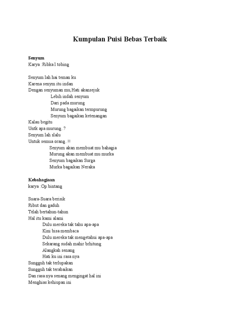 Pada tahun 1974 dalam pertemuan sastrawan DKJ TIM Danarto menurunkan puisi dalam bentuk kotak-kotak Malna dalam Rampan 200069. Koleksi Contoh Puisi Bebas Tentang Remaja PDF - Berikut ini kami dari Kumpulan Soal Cpns Pengamalan Pancasila memiliki informasi terkait Judul. You can adjust the width and height parameters according to your needs.