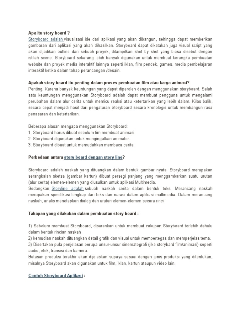 Storyboard adalah gambar individual dari setiap aksi di dalam naskah dan digunakan dalam produksi hampir semua filmanimasi atau langsungStoryboard harus dibuat secara sederhana dan komprehensif karena Anda membutuhkannya di setiap perubahan dalam film Anda. Mendeskripsikan tujuan pemebelajaran dengan jelas 3. Charolus SC Lowa Sada.