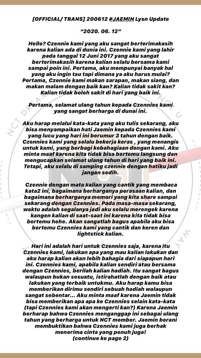 Nct Indonesia Fanbase On Twitter Trans 200612 Jaemin Lysn Update