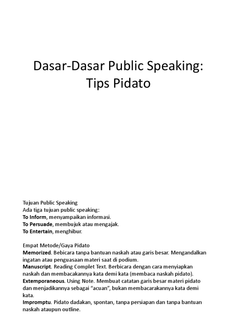 Suka merasa gugup grogi merasa tidak bisa. Namun sejauh ini belum ditemukan terjemahan public speaking yang pas dalam bahasa Indonesia selain berbicara di. CONTOH NASKAH PIDATO PUBLIC SPEAKING.