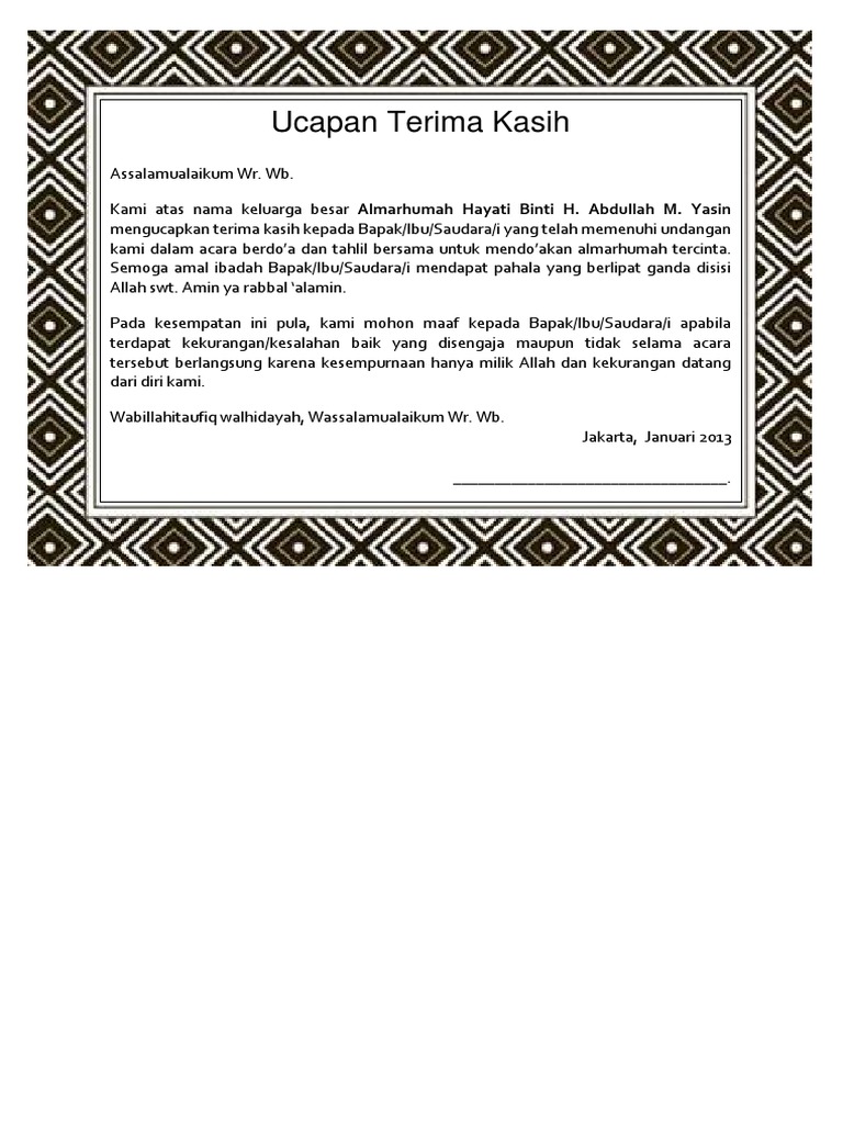 Contoh Ucapan Terima Kasih Keluarga Yang Berduka Contoh Kartu Ucapan