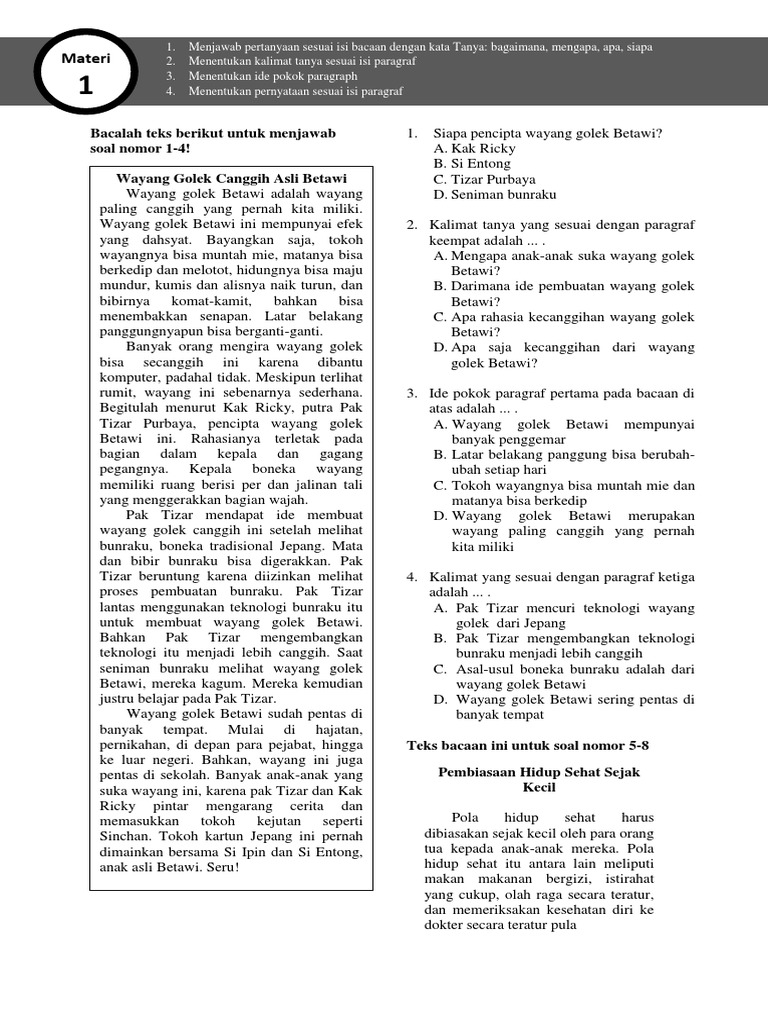 Socalah paragraf berikut kemudian keiakan soal nomor 4samPa dengan 7. Lengkapi atau mengisi kata yang dihilangkan sejalan dengan kalimat sebelumnya. Kata yang paling tepat untuk melengkapi titik titik pada kalimat di atas adalah from AKUNTANSI 123 at PGRI University of Yogyakarta.