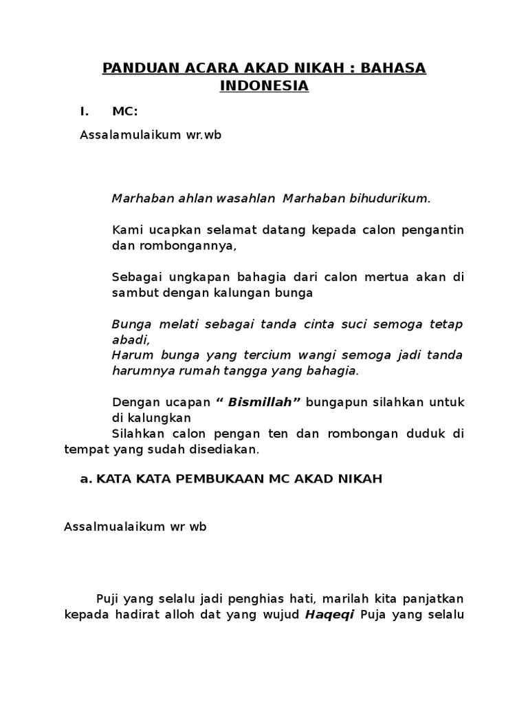 NASKAH LENGKAP PEMBAWA ACARA MC PERNIKAHAN. Akad nikah doa Selanjutnya marilah kita ikuti acara inti yaitu akad nikah yang dilanjutkan dengan pembacaan doa akad nikah yang akan dilaksanakan antara Saudari NURHAYATI dengan saudara ENDAR DWI PRASETYO. 46 Kata-kata Mutiara Islami Untuk Guru Inspirasi Baru.