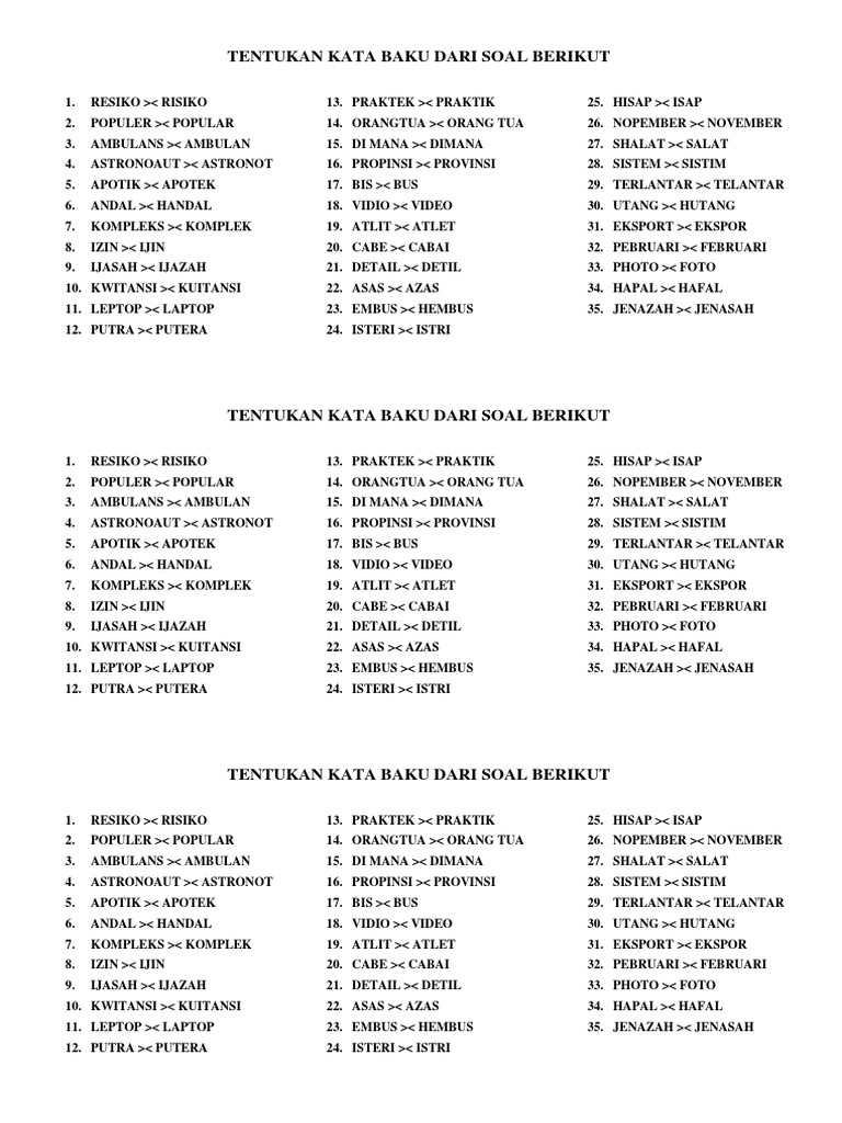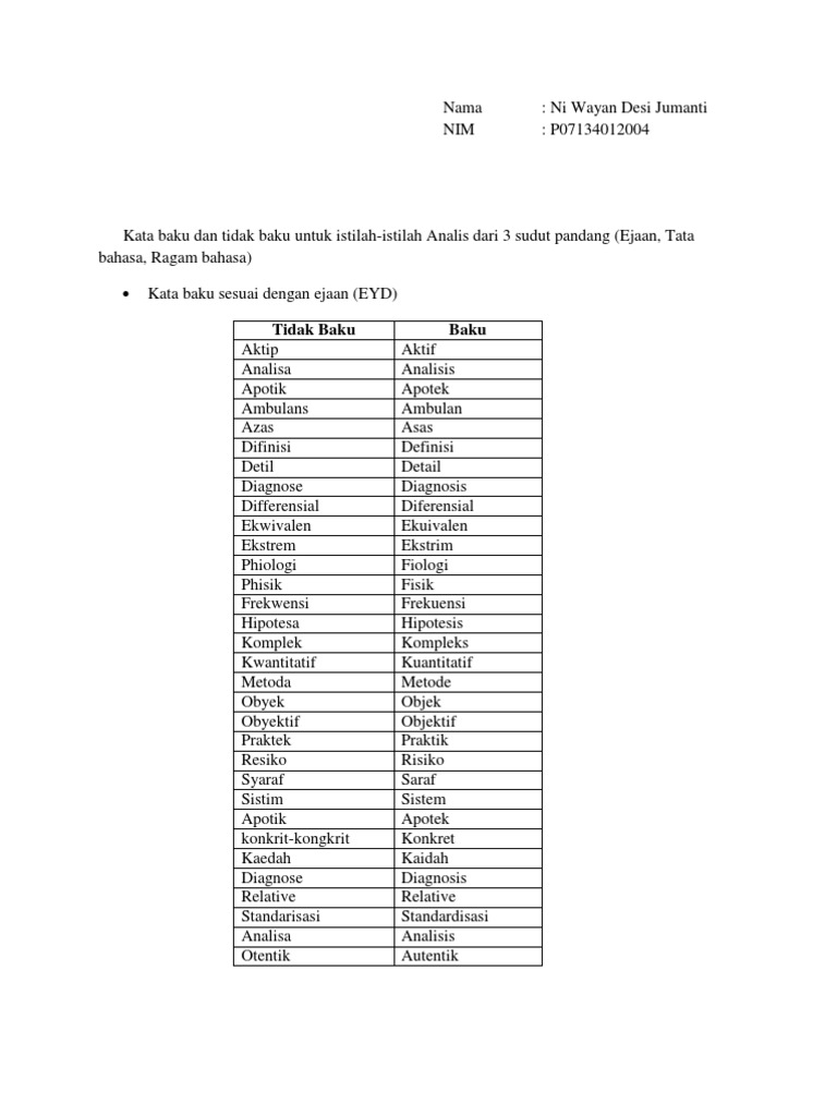 Contoh Kata Tidak Baku Materi Pelajaran 1