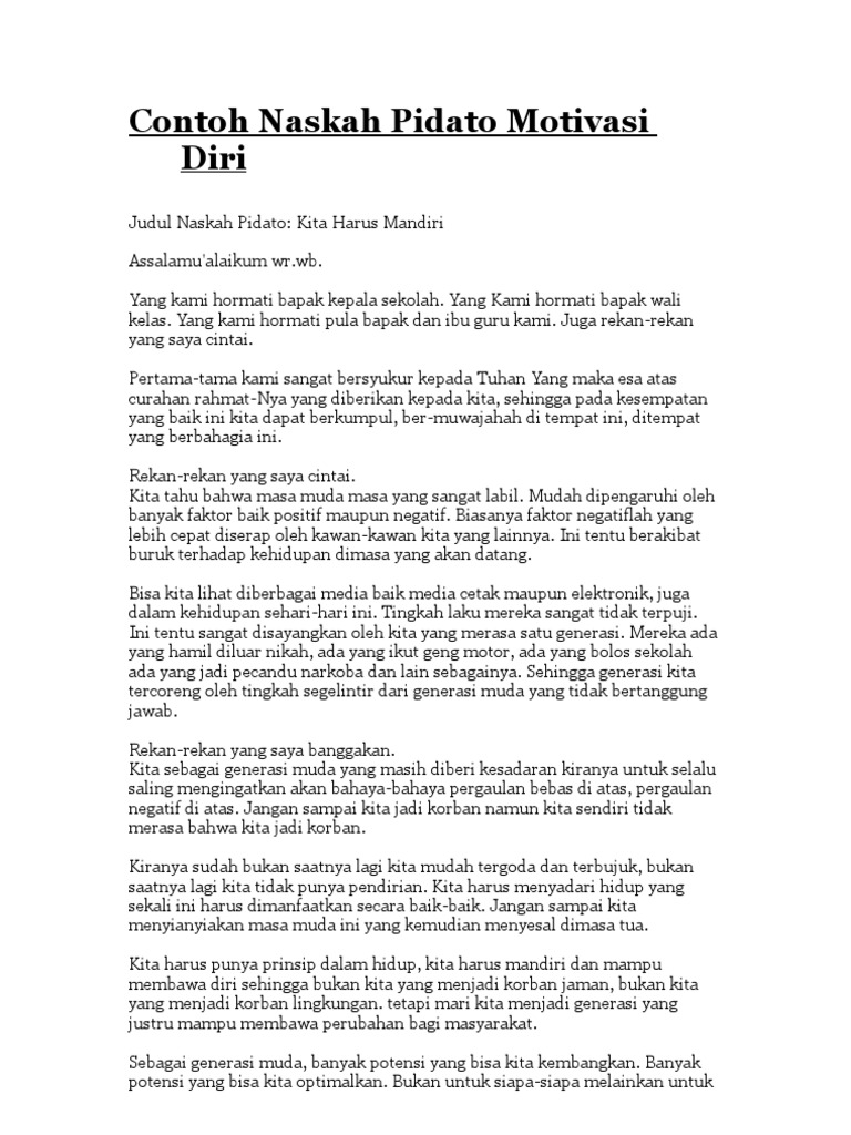 Iya naskah untuk ngomong. September 22 2014 by admin 0. Contoh Naskah Pidato Motivasi Diri.