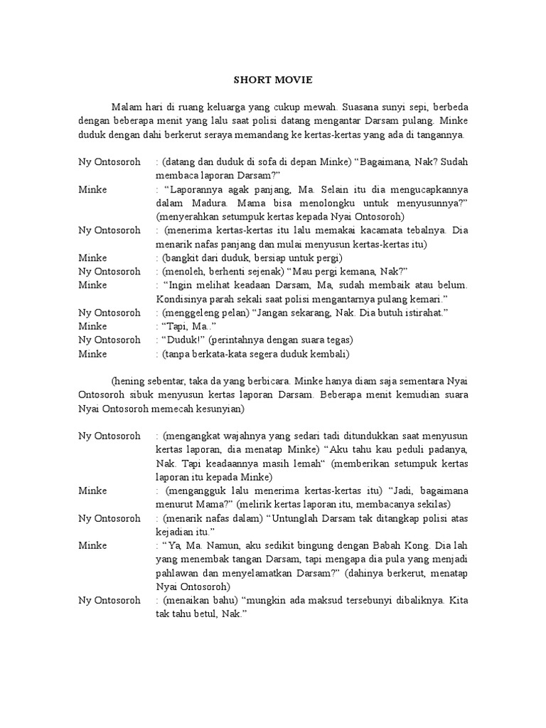 Demikian keterangan beberapa pekerja di. Memberikan pemahaman kepada para remaja khususnya dan masyarakat umum pada umumnya tentang arti sebuah persahabatan. 2 Contoh Naskah Drama Pendek 4 Orang Naskah drama ialah suatu bentuk sajian tulisan yang tersusun atas alur sebuah cerita yang juga berisikan tentang diaolog-dialog dari para tokoh pemerannya.