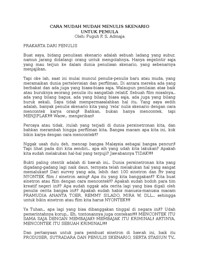 Model profesi seperti penulis skenario drama skenario FTV atau sinetron stripping bisa diibaratkan layaknya musisi untuk pengelompokannya. Admin contoh surat Contoh naskah film pendek - Siapa yang tidak menyukai film di dunia modern ini. Ya betul itulah angka honor per bulan yang bisa dicapai seorang penulis naskah sinema elektronik alias sinetron di Indonesia saat ini.